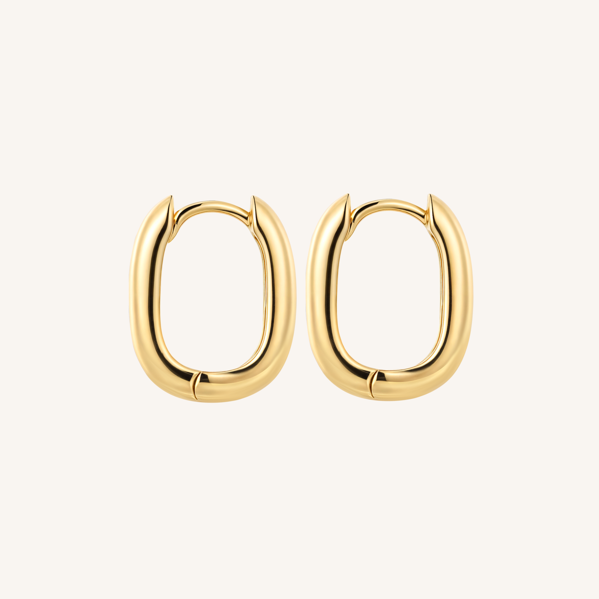 The Aston Hoops are your statement everyday hoops, chic, sculptural, and crafted to last. Made from premium 14k gold filled, these hoops offer the look and feel of solid gold at an accessible price. Their thicker 4mm profile adds instant sophistication, making them the perfect balance of minimalist design and bold impact.