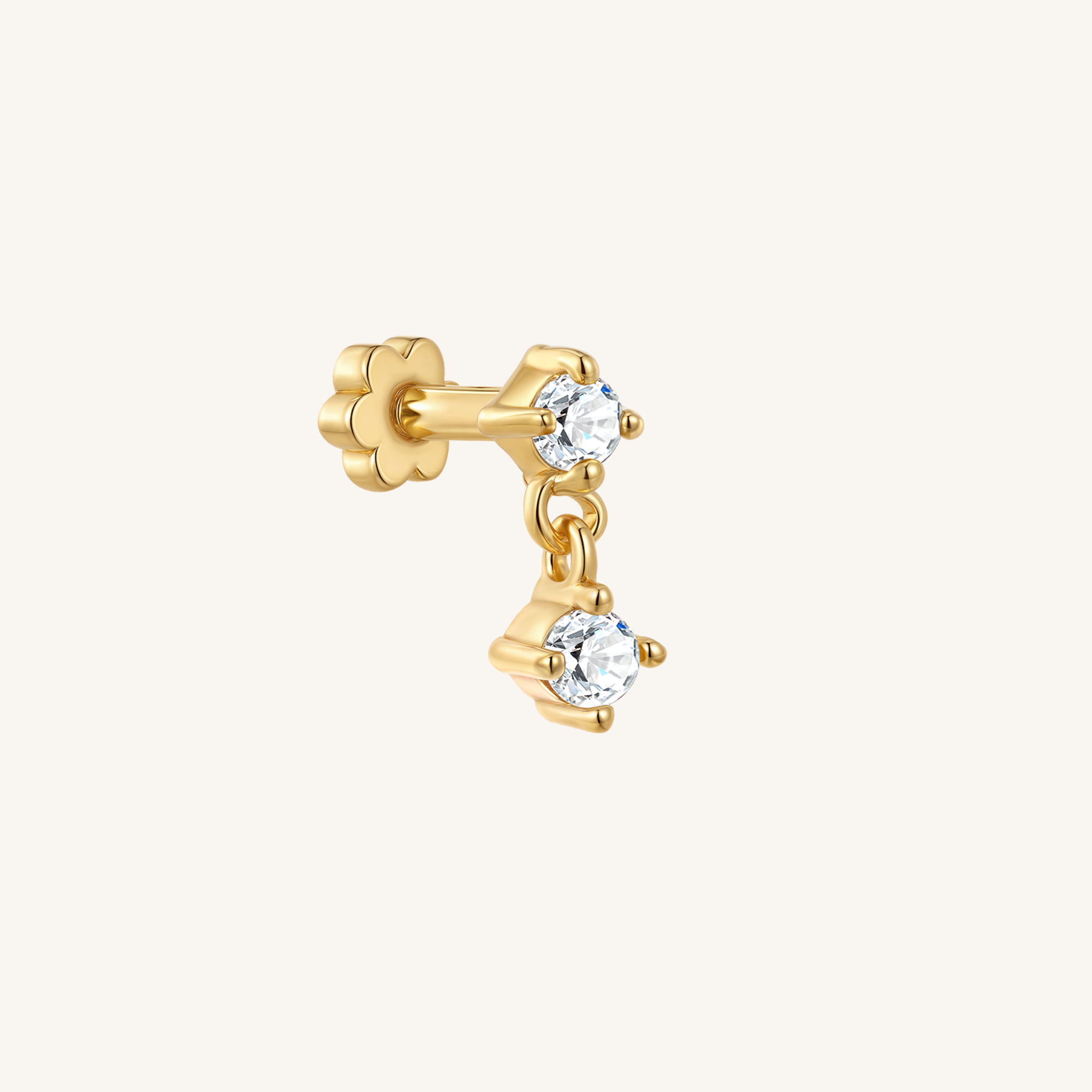 Crafted in premium 14k gold filled, they are hypoallergenic, water-resistant, and tarnish-resistant — designed to stay in while you sleep, shower, or work out. The flat back threaded design ensures a secure fit that sits flush against your ear, making them perfect for cartilage, second piercings, or everyday stacks.