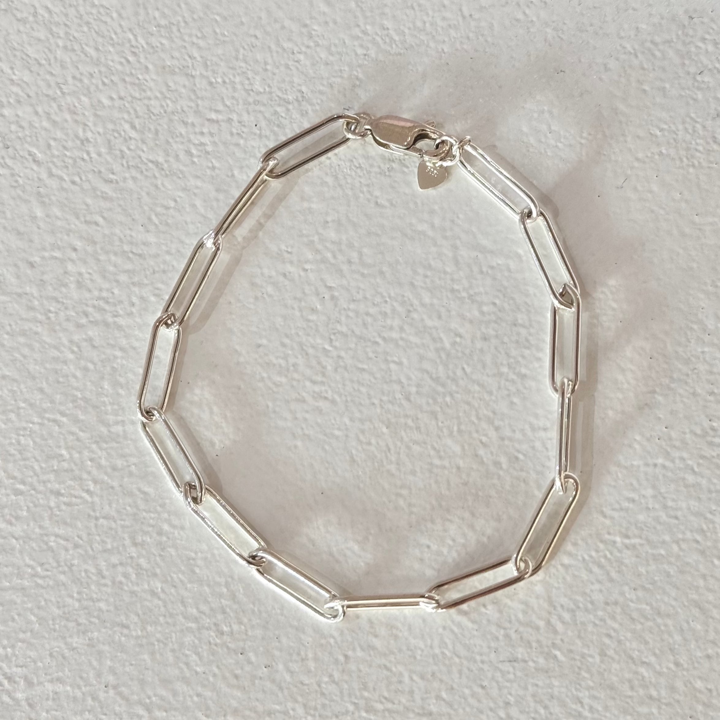 Embody elegance and luxury with the Amelia Chain Bracelet in silver. Crafted with 925 Sterling Silver rectangular links, this bracelet effortlessly drapes along your wrist. Perfect for any occasion, wear it solo or layer for a elevated touch.