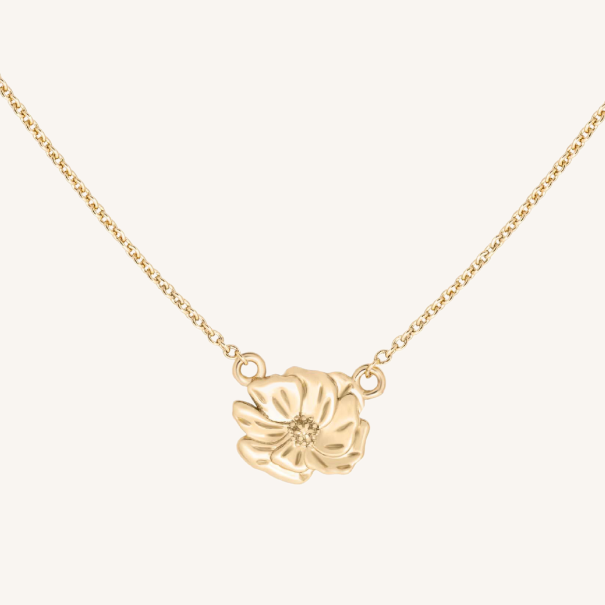 The vibrant poppy stands for imagination, courage, and remembrance. This August birth flower necklace is a powerful yet graceful way to honour individuality, creativity, and strength of spirit.
