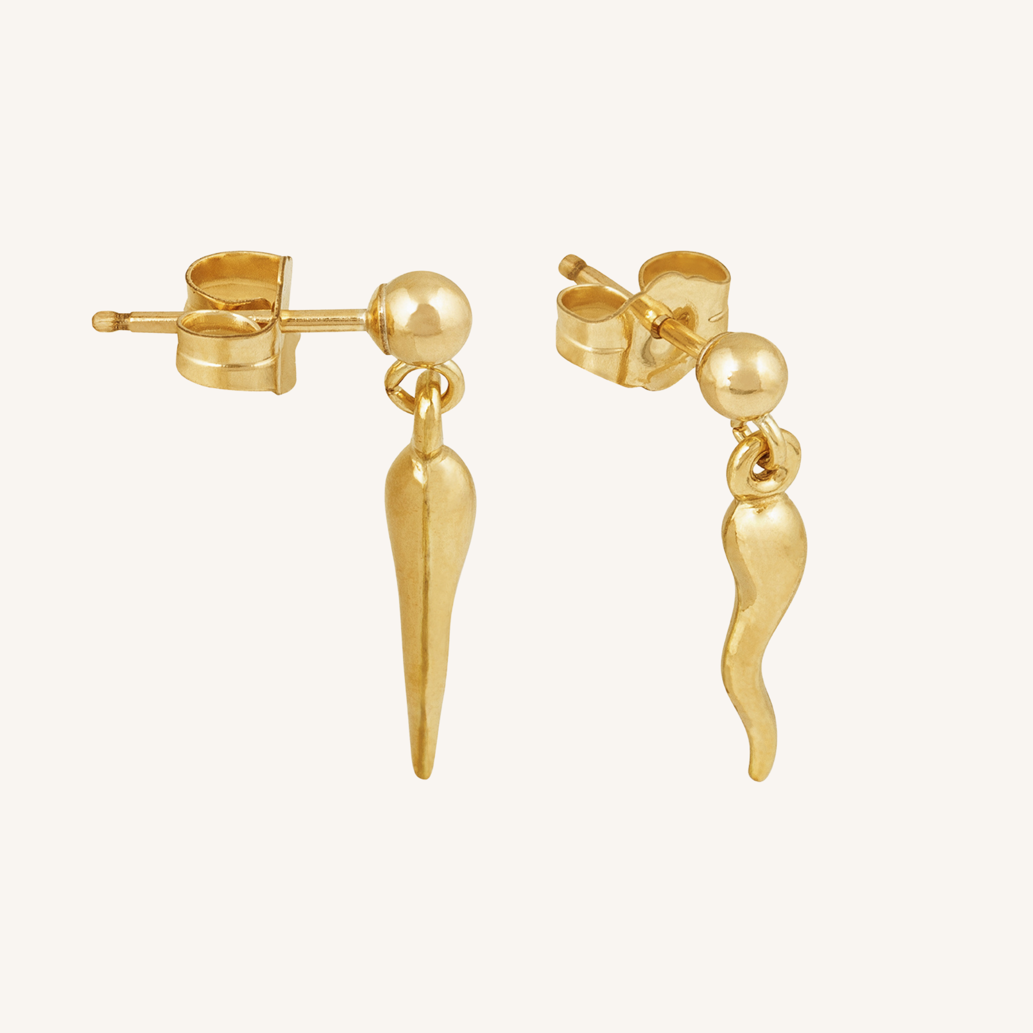 Meet our Chilli Drop Earring in gold - the perfect accessory for any occasion. These stunning earrings feature a 14k gold filled stud with a gold chilli.
