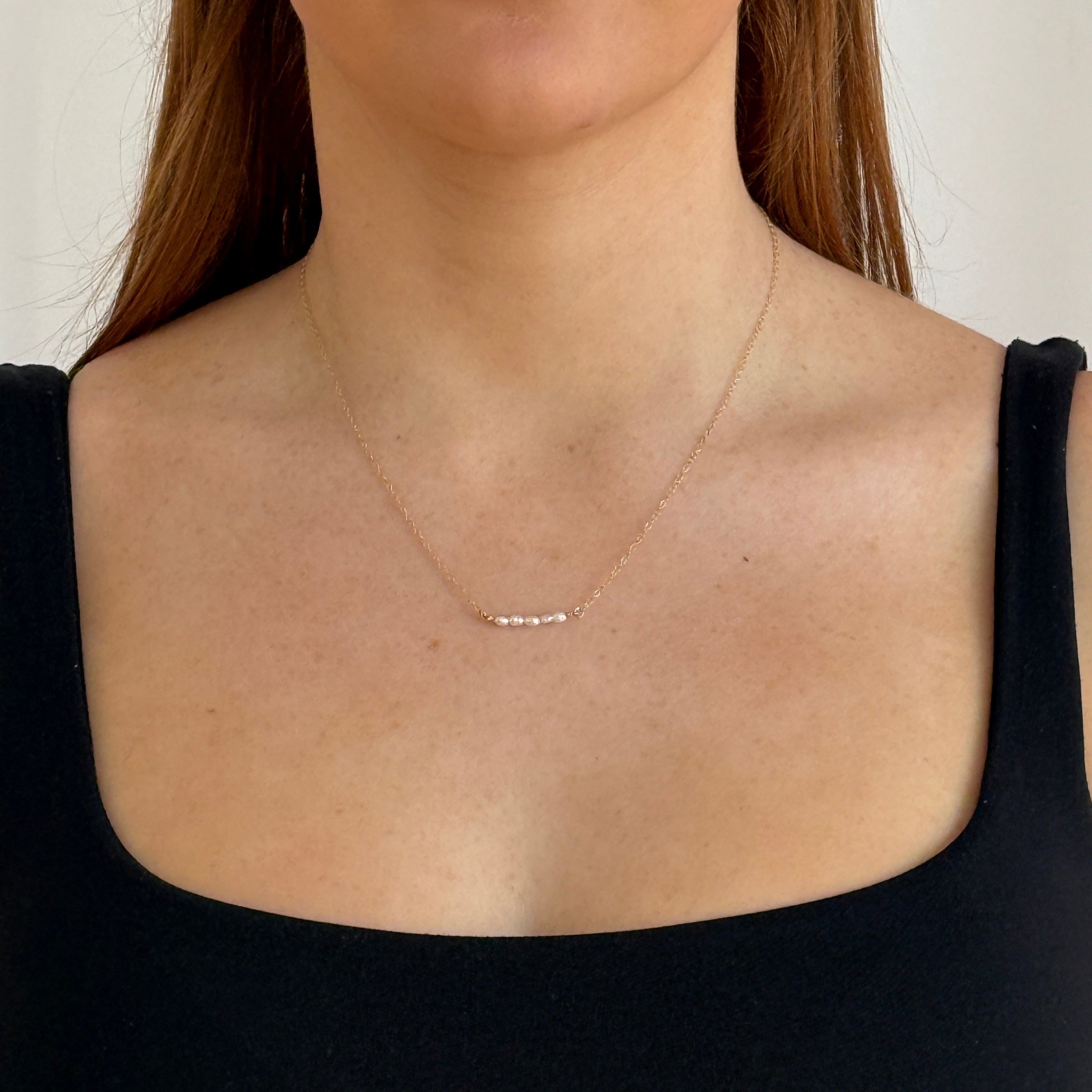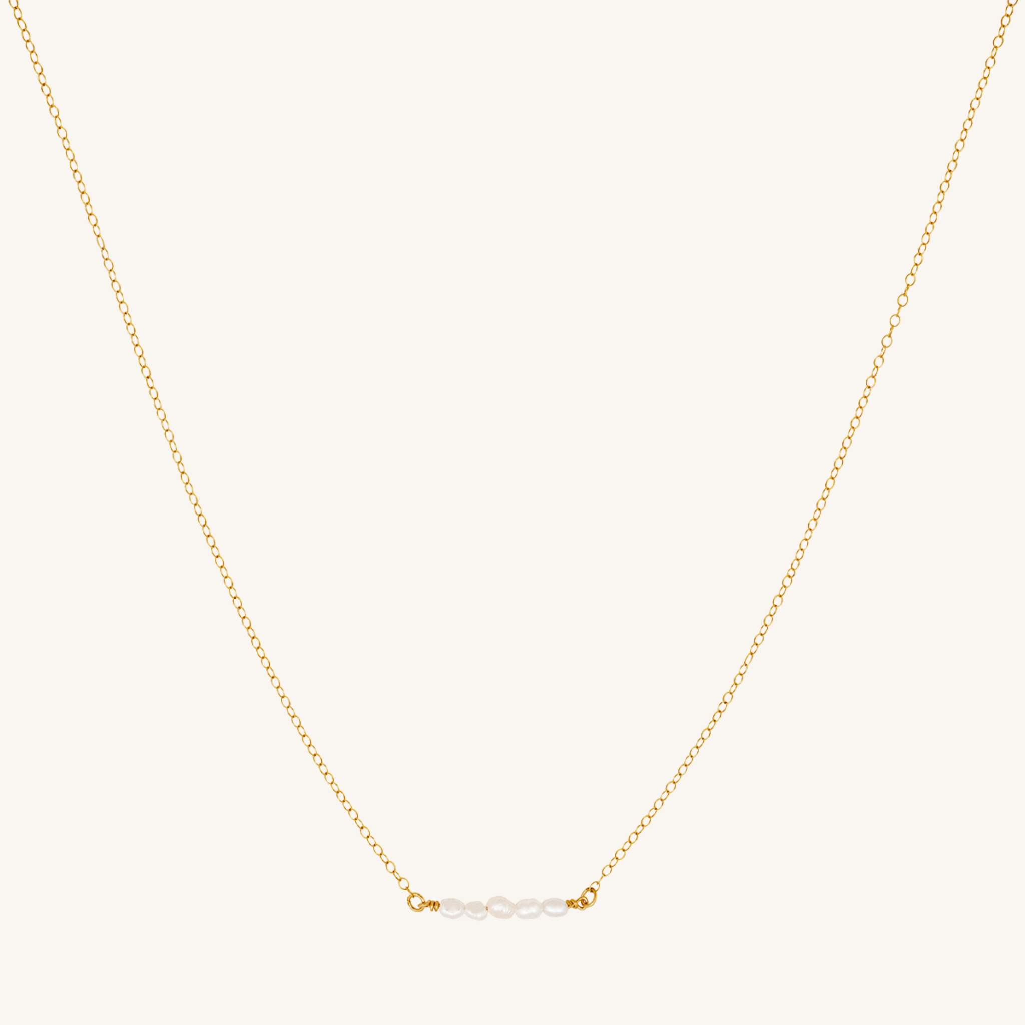 The Cici Freshwater Pearl Necklace is perfect for layering, made with elegant freshwater pearl drops and 14k Gold Filled cable chain.