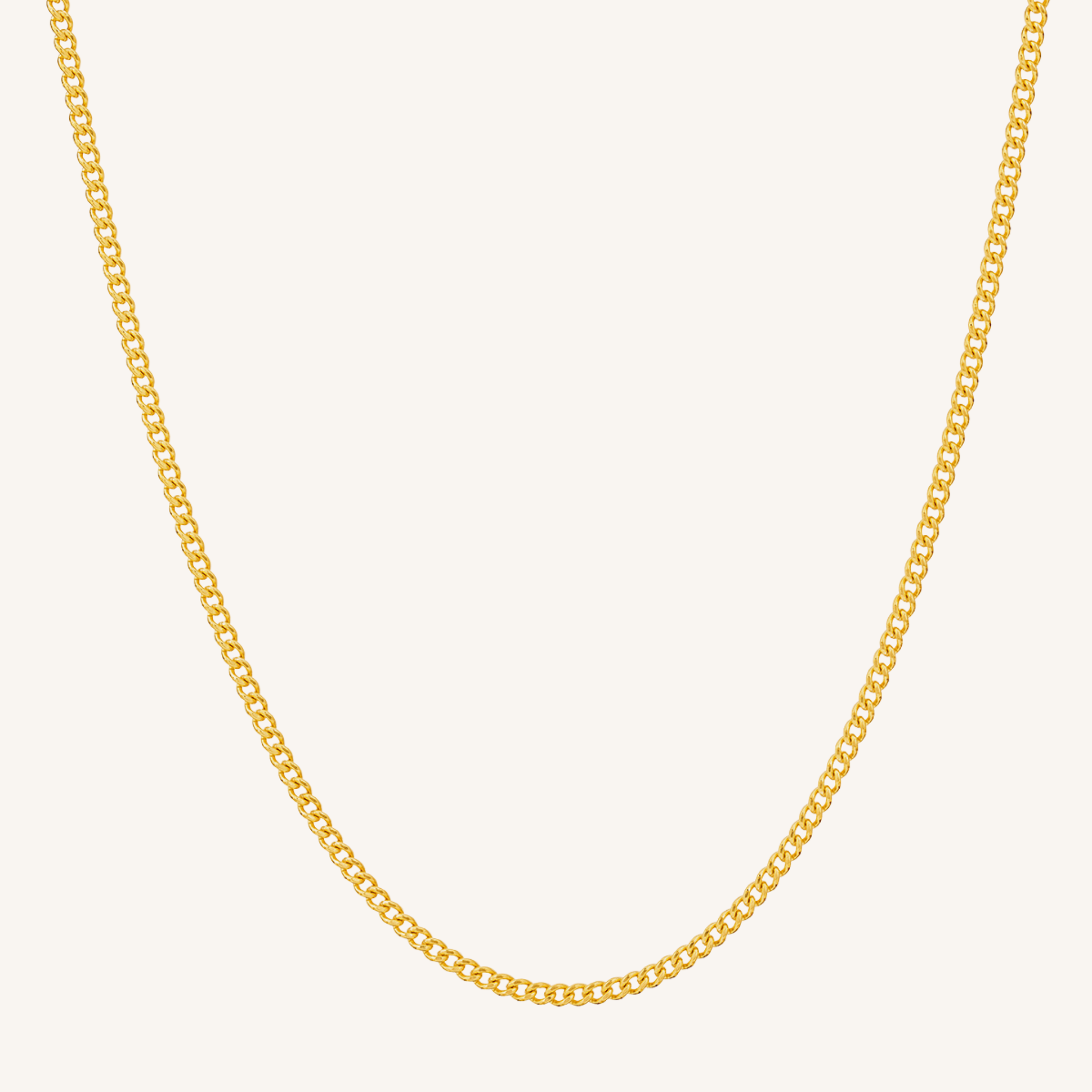Clio Large Curb Necklace in Gold. Crafted from 14k gold-filled material, this necklace boasts a stunning large curb chain