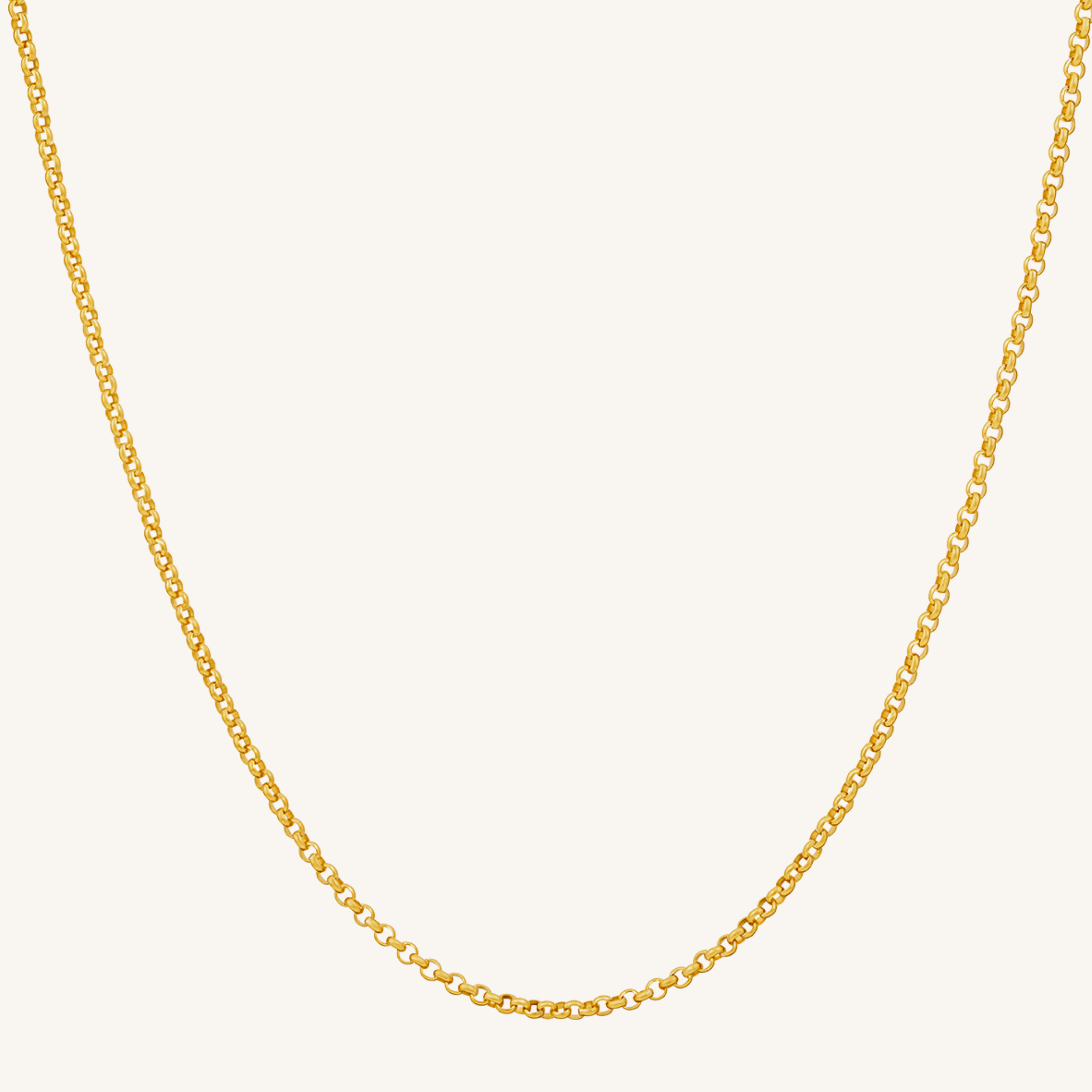 Gia Large Rolo Necklace in Gold. Crafted from 14k gold-filled material, this necklace boasts a stunning large rolo style chain