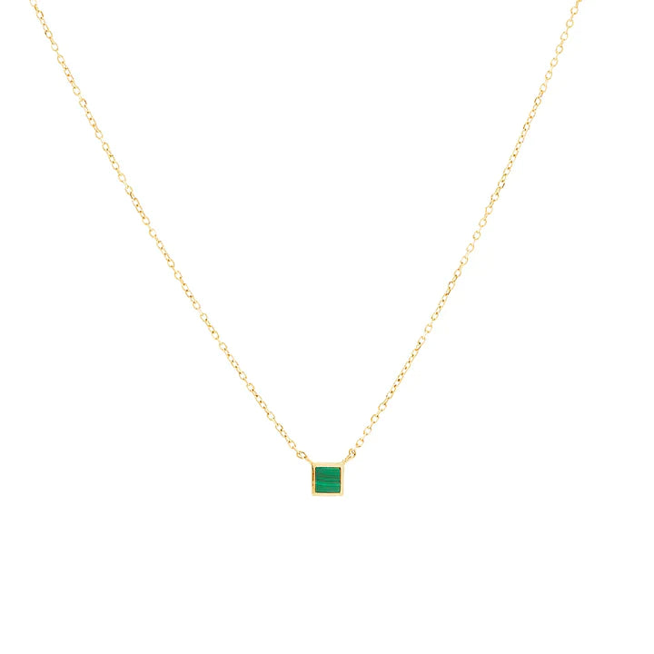 Introducing the Lara Malachite Square Necklace, a breathtaking piece that is sure to turn heads! This stunning green square pendant hangs gracefully from a beautiful sterling silver chain. Perfect for formal occasions or everyday wear, this exquisite necklace will make a lasting impression!