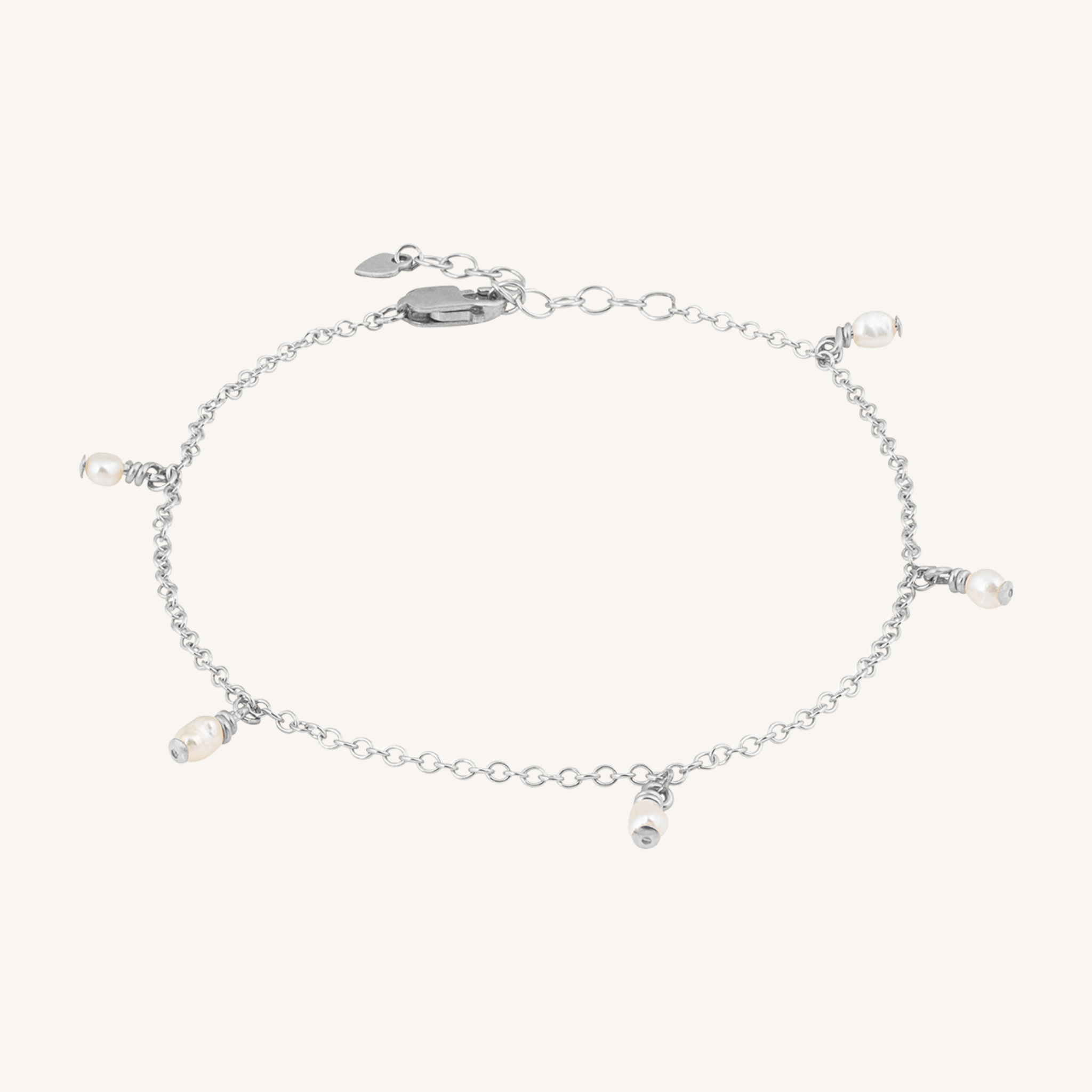 The Lina Freshwater Pearl Bracelet in Silver is adorned with 5 delicate freshwater pearls. Its subtle design and delicate silver chain make it the perfect statement piece for any occasion.