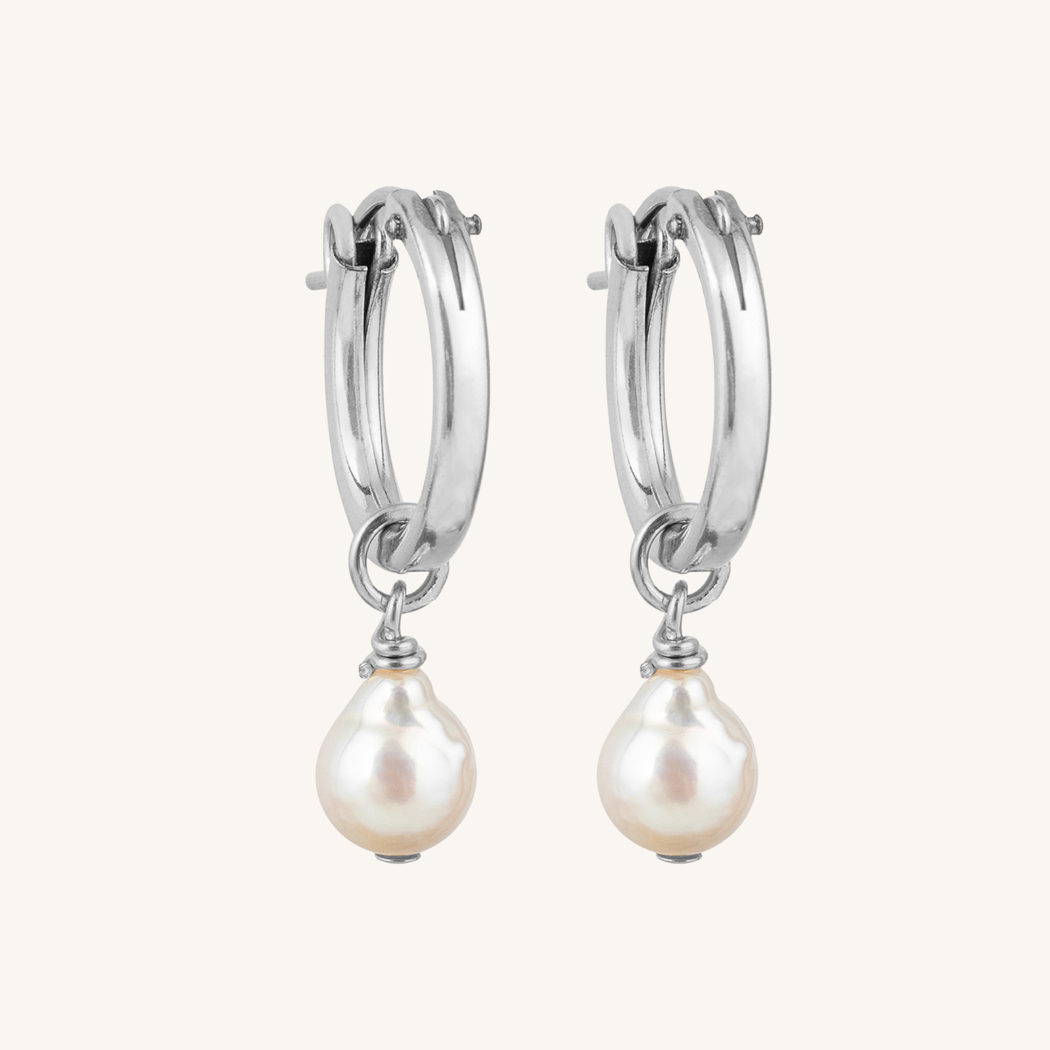Complete your outfit with these elegant Mimi Pearl Hoops in silver. Featuring a stunning freshwater pearl, these hoops add a touch of luxury to any look.