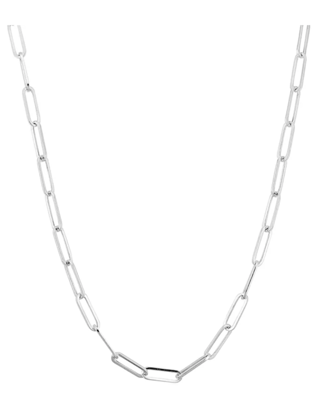 Elevate your style with the Naya Necklace in Silver. Crafted from 1925 sterling silver material, this necklace boasts elongated rectangular links for a delicate and refined look.
