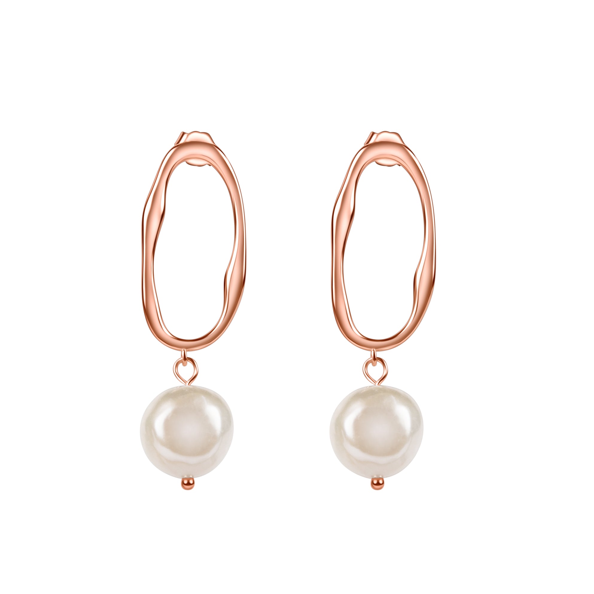 Handcrafted with exquisite detail, these earrings feature a molten rose gold oval with a delicate freshwater pearl drop, that's sure to brighten your look.