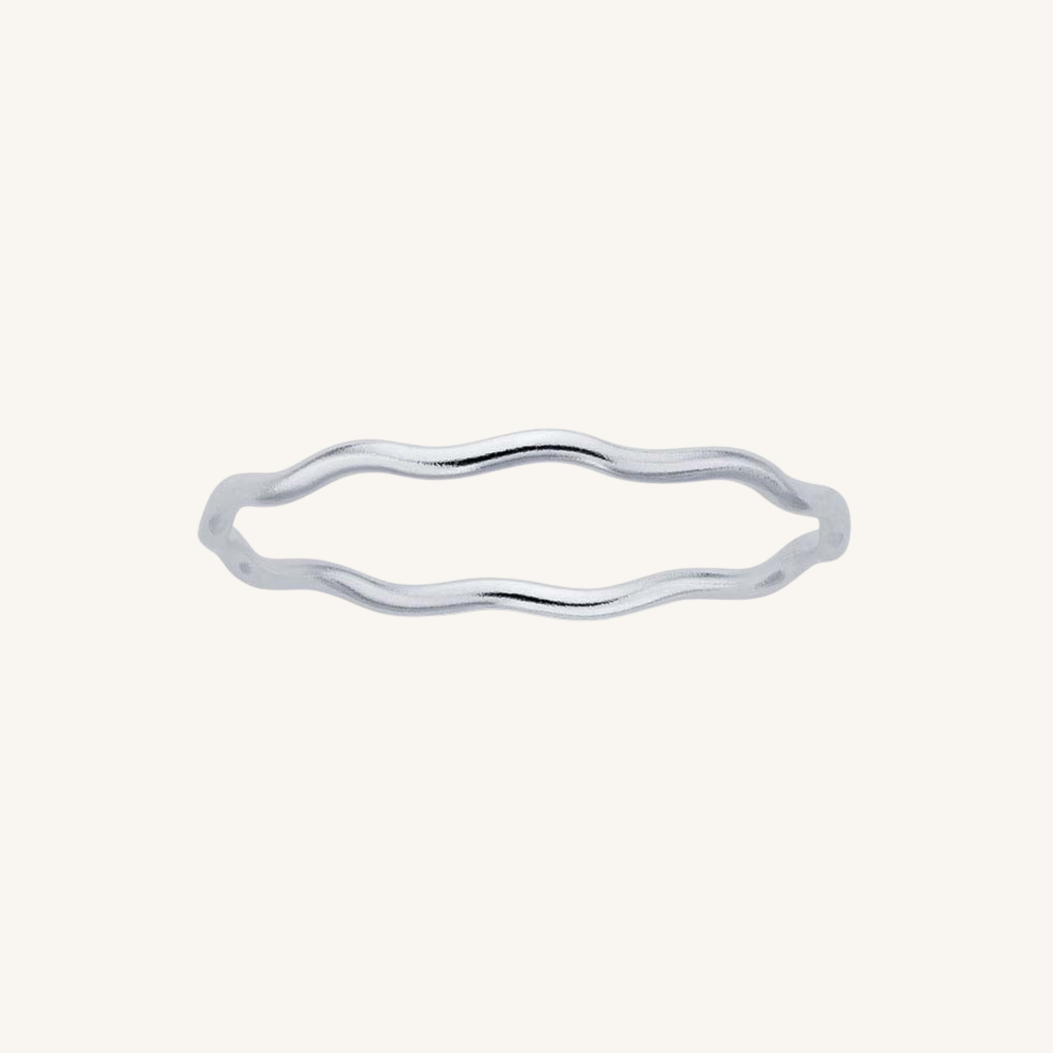 This wave-inspired silver ring is a perfect blend of modern style and precious metal. Its sleek design is sure to make a statement.