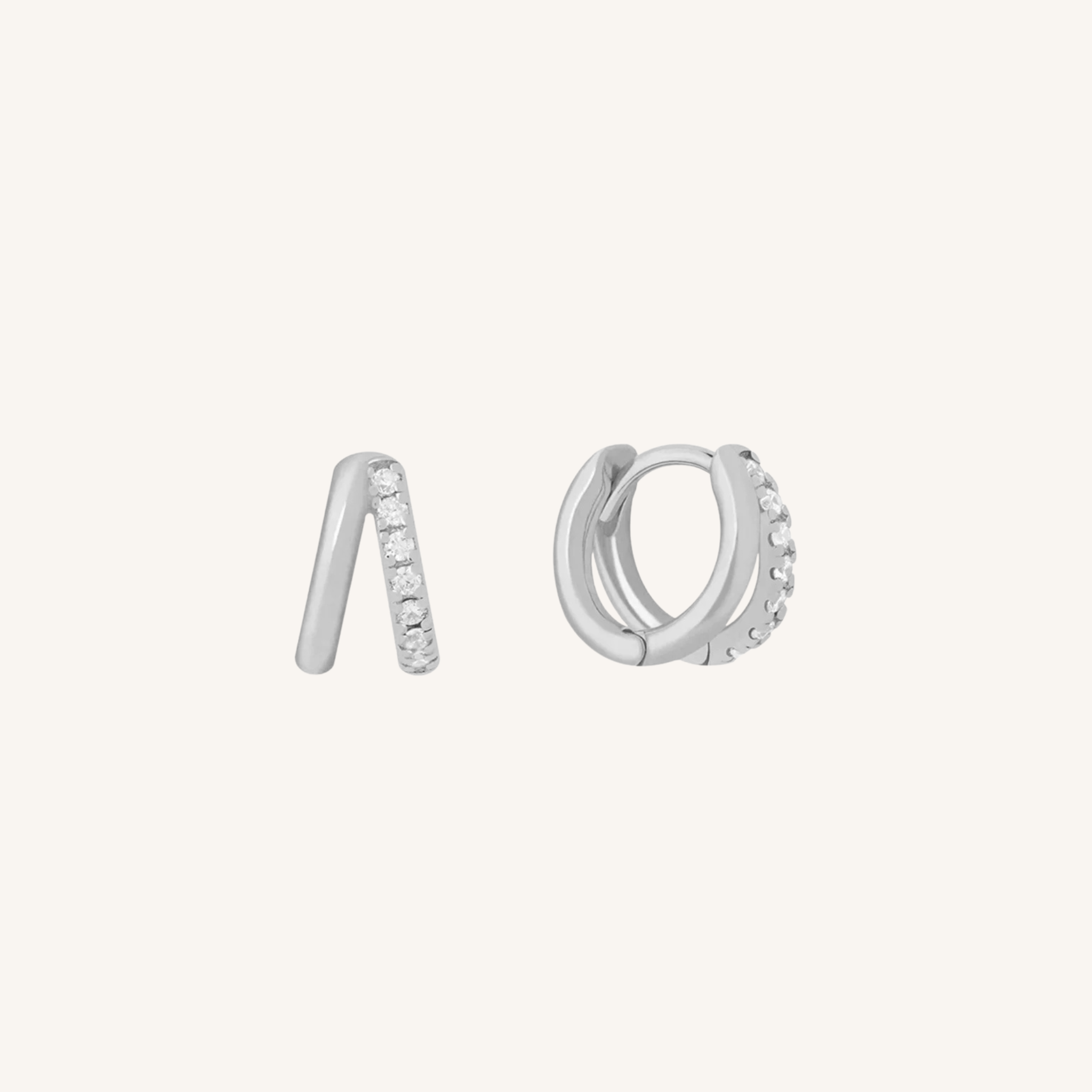 The Ivy Earrings feature a clean silver silhouette accented with delicate pavé crystal detailing along one side. Subtle sparkle, modern edge — designed to elevate your everyday stack.