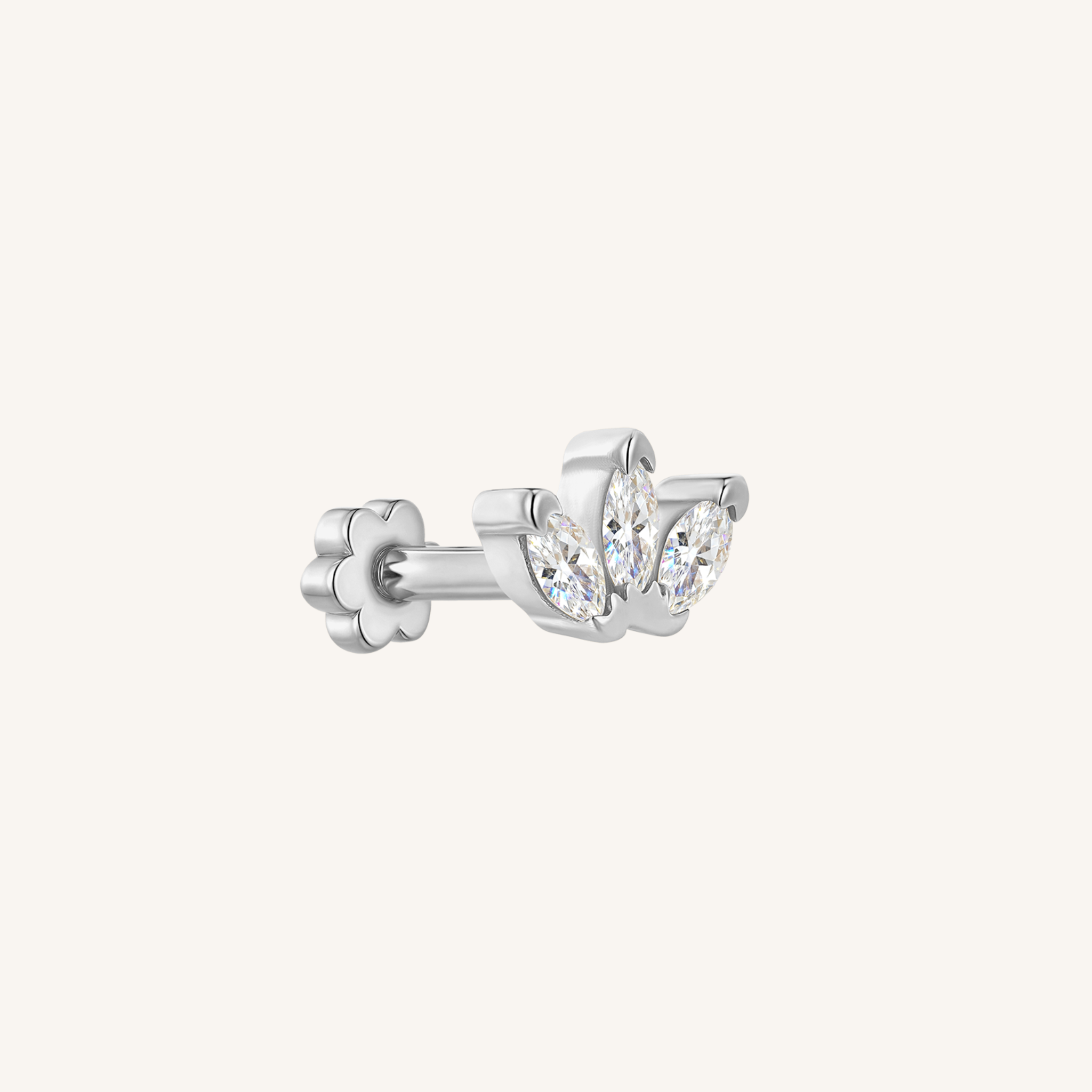 With a flat back that threads into the post, these earrings sit flush against your ear — making them perfect for sleeping, working, or stacking in multiple piercings. The unique triple marquis design adds just the right amount of shimmer to your ear stack.