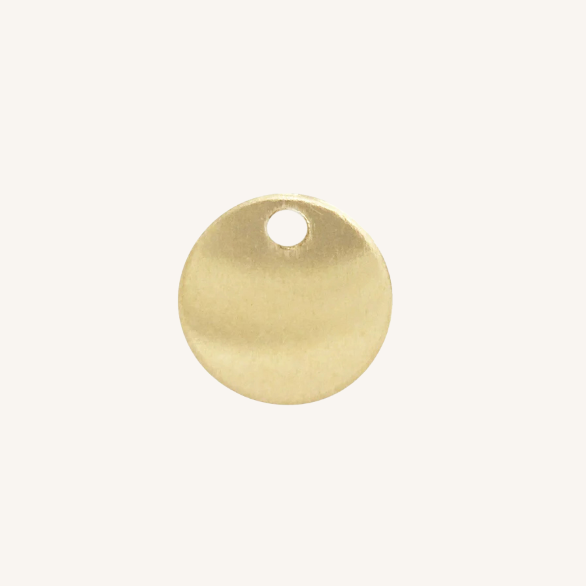Add a personal touch to your jewellery collection with our Engravable Circle Charm in Gold. Made from 14k Gold Filled, this charm allows you to select up to two letters, numbers, or symbols for a unique and sentimental piece. Perfect for yourself or as a thoughtful gift for a loved one.
