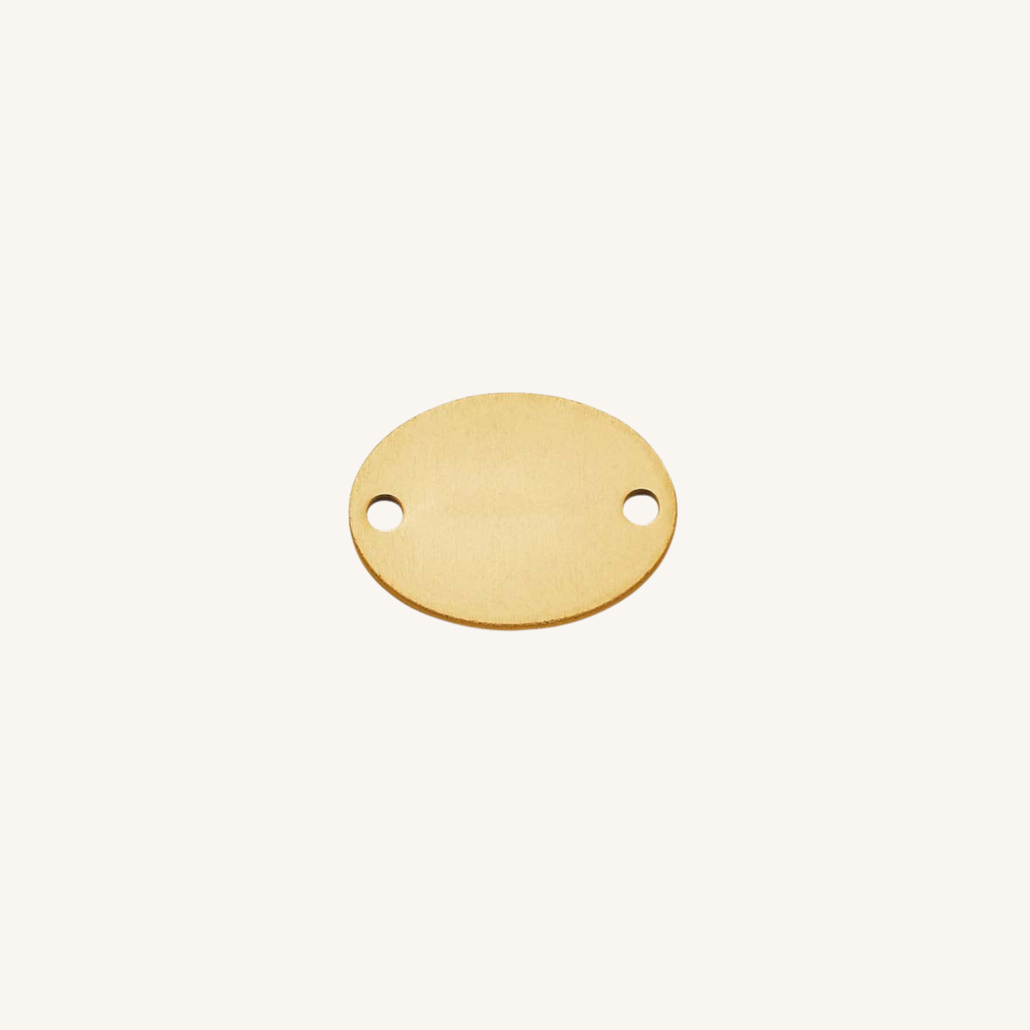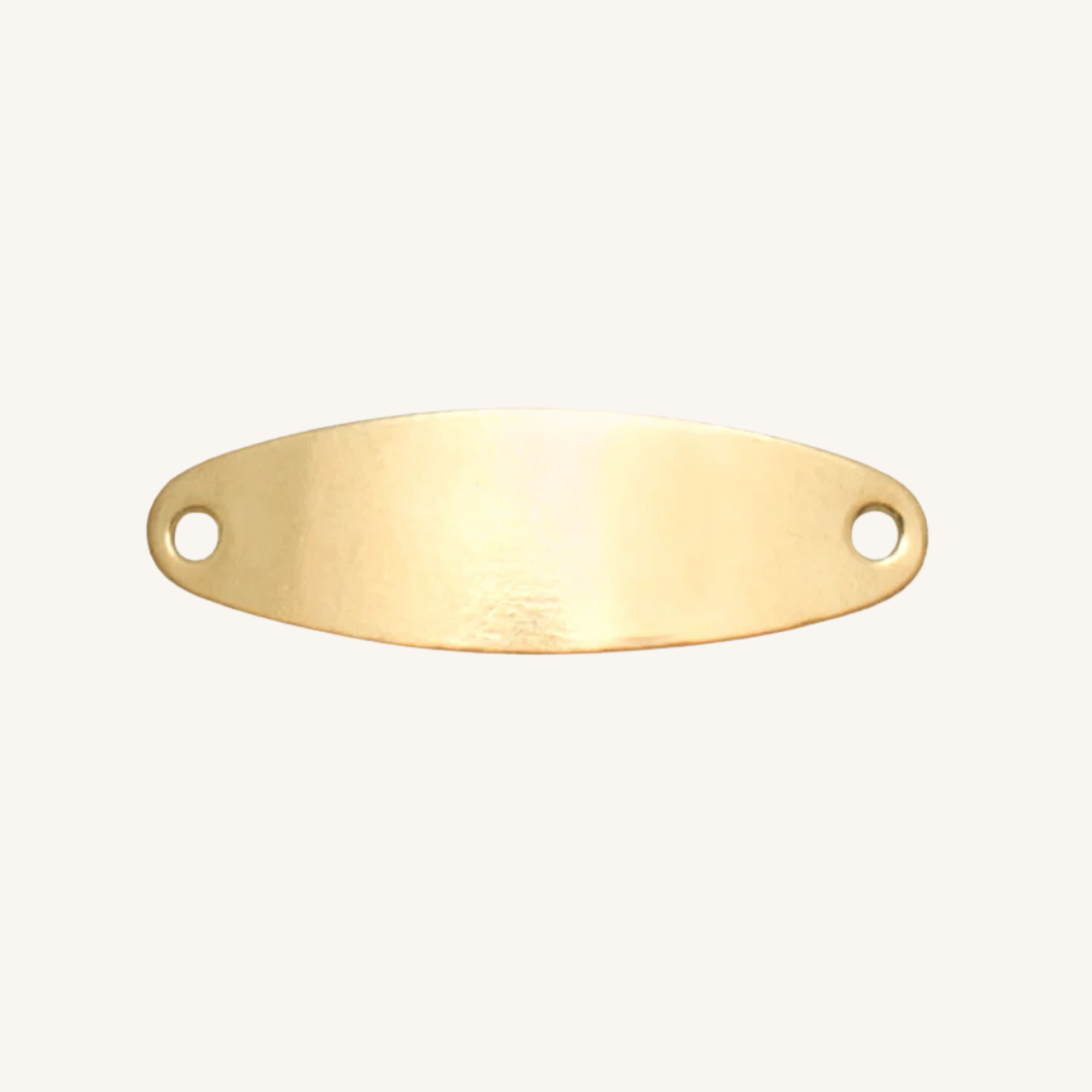 Add a personal touch to your jewellery collection with our Engravable Connecting Oval Charm in Gold. Made from 14k Gold Filled, this charm allows you to select up to two letters on the small charm and five on the large charm, numbers, or symbols for a unique and sentimental piece. Perfect for yourself or as a thoughtful gift for a loved one.