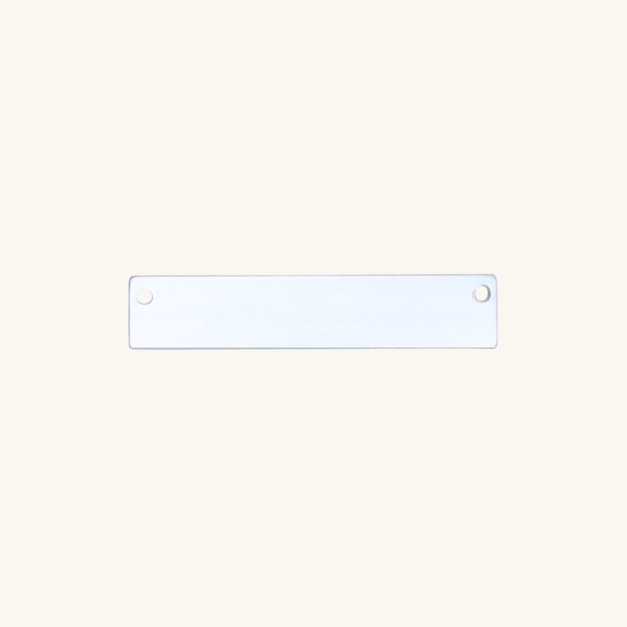 Add a personal touch to your jewellery collection with our Engravable Horizontal Bar Charm in Silver. Made from 925 Sterling Silver, this charm allows you to select up to ten letters, numbers, or symbols for a unique and sentimental piece. Perfect for yourself or as a thoughtful gift for a loved one.