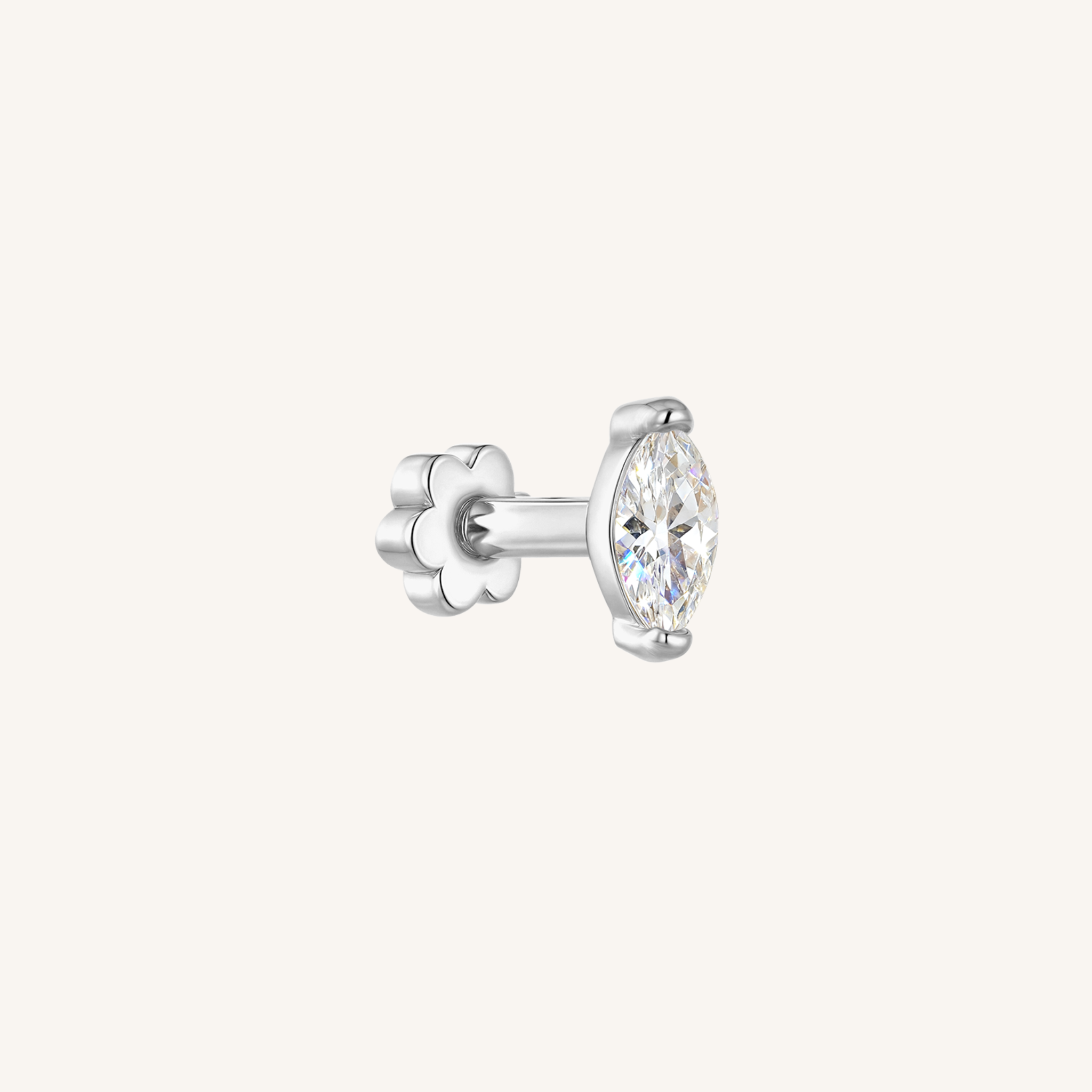 Marquis Flat Back Earrings – 925 Sterling Silver Threaded Studs