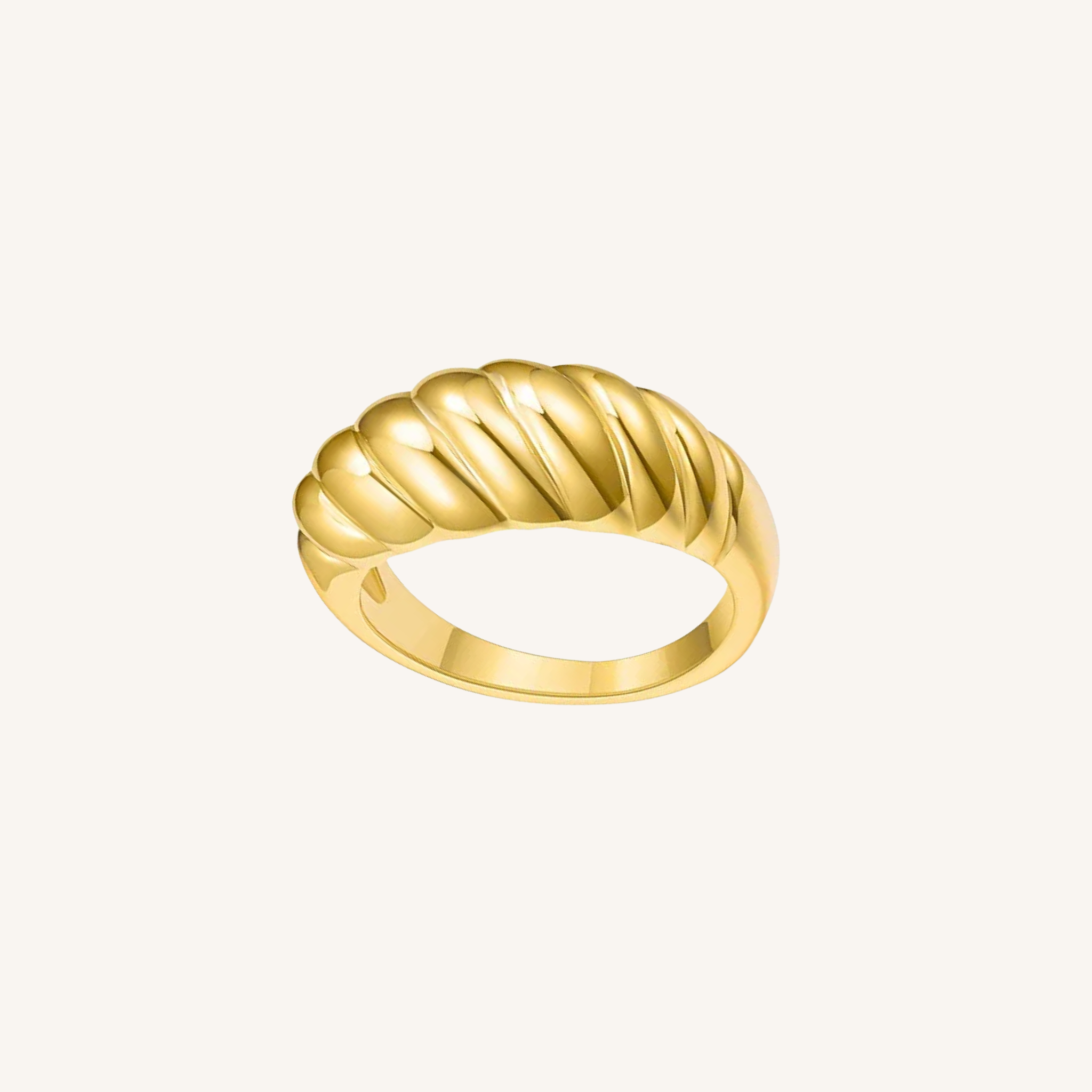Elevate your style with our Aria Ring in Gold. This exquisite piece features a croissant-shaped front, expertly crafted from 18k gold plated over 925 sterling silver.