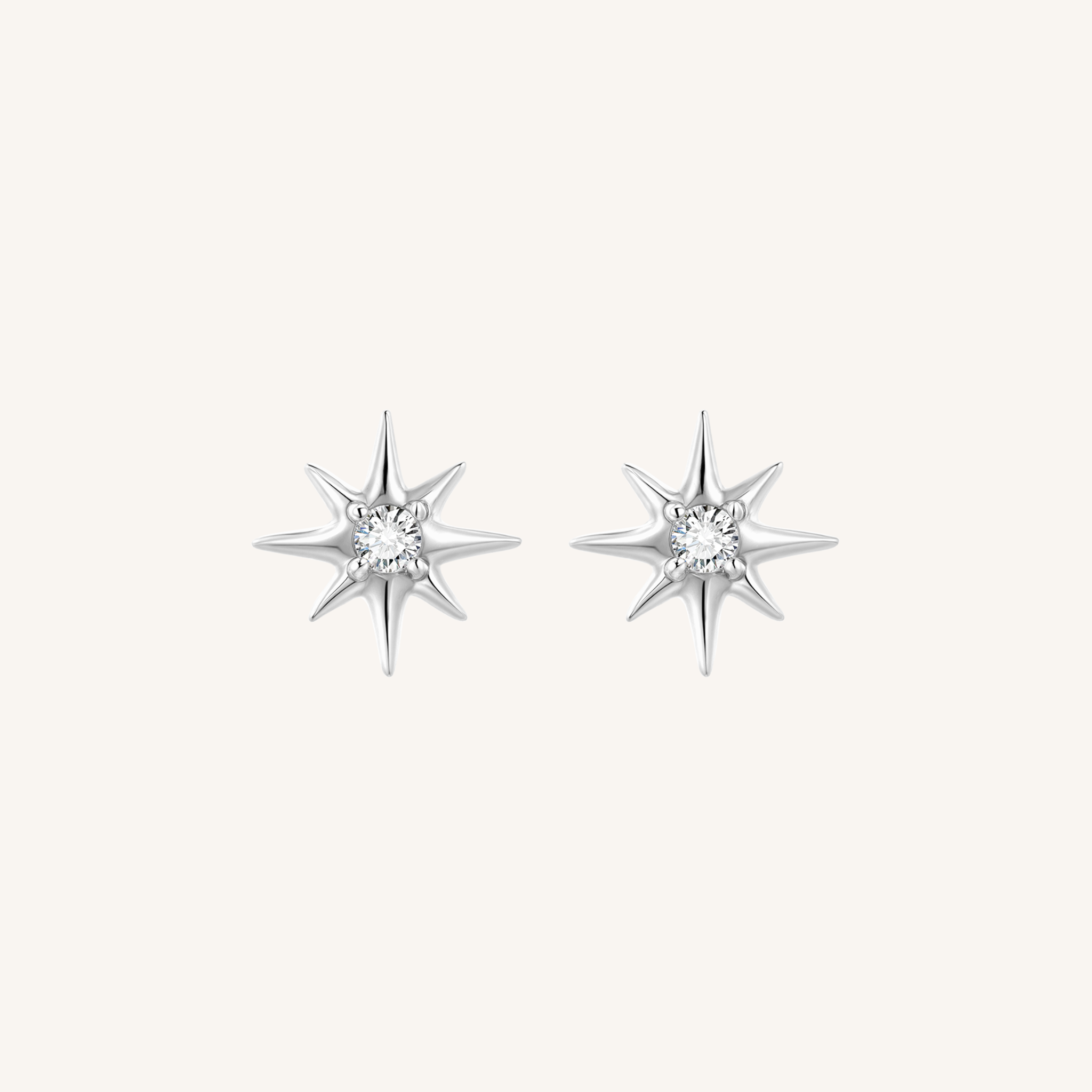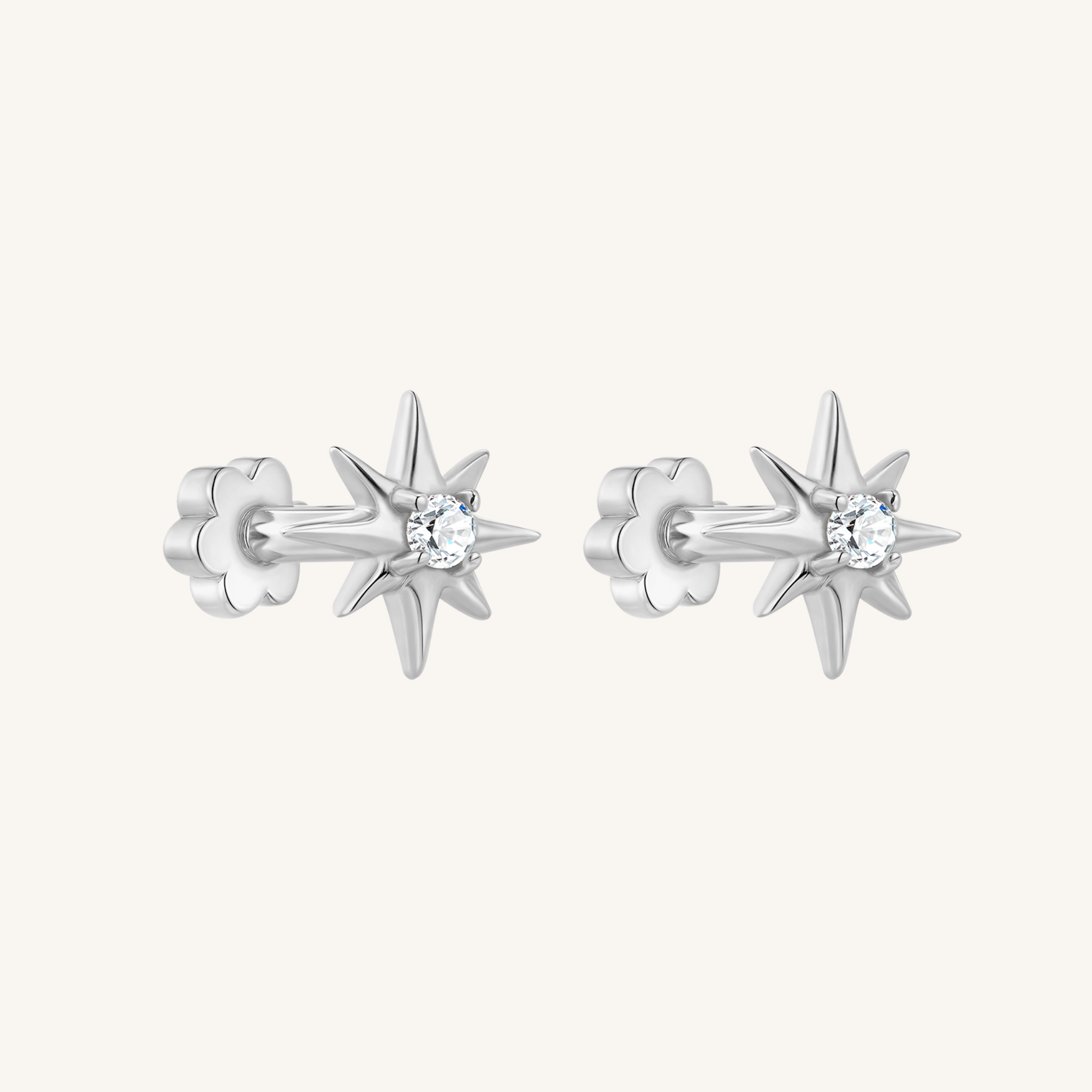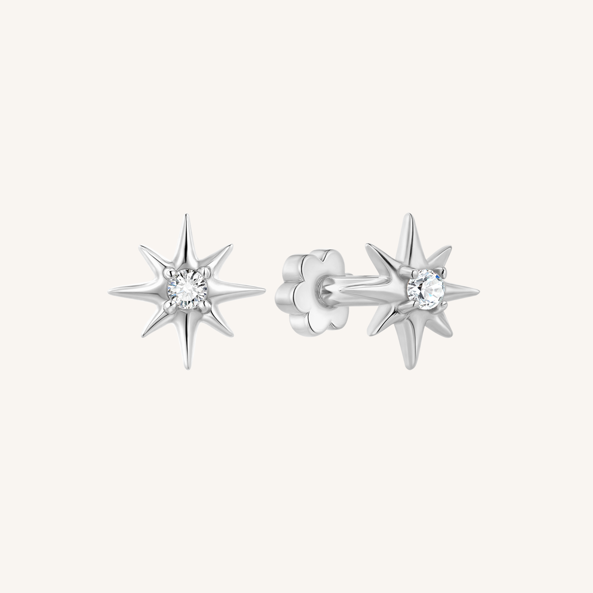A modern, celestial stud that blends comfort with timeless silver shine.