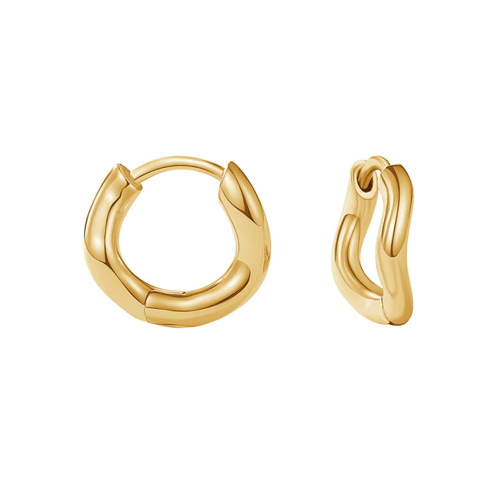 Our Wave Hoops in Gold will bring a sophisticated touch to your earring collection. Expert crafted from premium materials, these simple yet elegant huggies boast a subtle wave design that gives a graceful accent to the classic design.